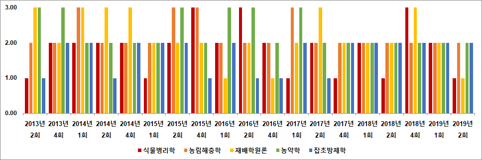 농림해충학 : 꾸준히 중간 정도의 난이도를 보여줌.