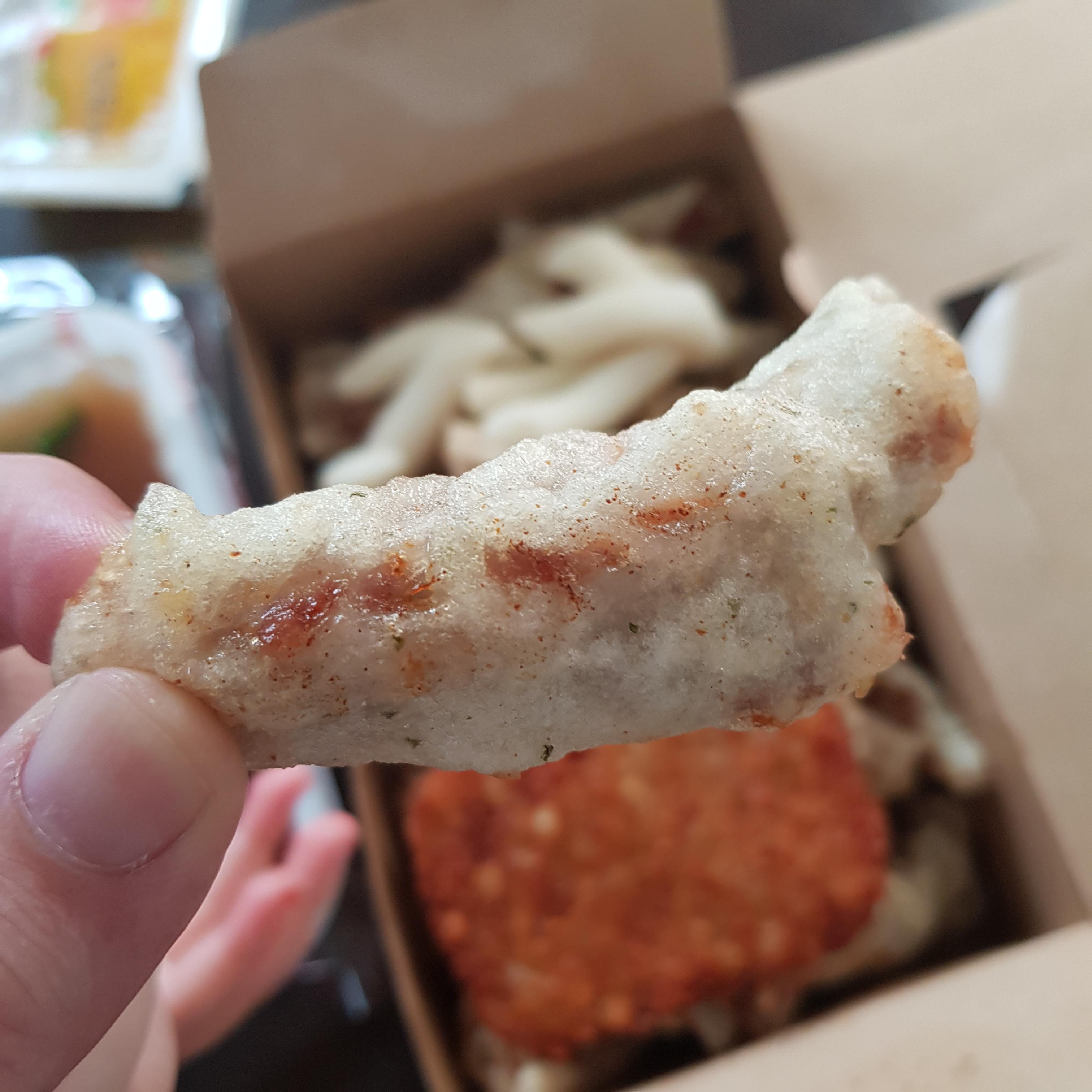 몇몇 개는 좀 눅눅했으나, 이는 배달오는 시간동안 용기 안에 있었기 때문이다. 대부분의 껍질은 바삭함을 자랑했고, 두껍지도 않았다.