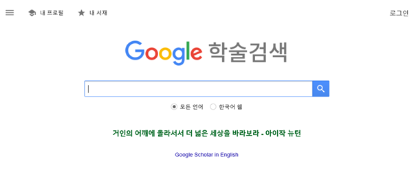 여기서부터는 포털 검색하는 방법하고 똑같다. 검색창에 필요한 단어를 넣고 검색을 하면 된다. 복잡할 것이 하나도 없다. 로그인을 할 경우 더 많은 서비스를 제공하므로 자주 이용하게 될 우리는 로그인을 해 주는 것이 바람직할 것이다. 로그인을 한 이후에는 내 프로필을 작성할 수 있으며, 내가 쓴 논문이 자동으로 내 프로필에 기재되게 된다. 또한 추천 학술자료가 생겨서 내가 자주 검색하는 논문을 중심으로 추천 논문을 찾아주기도 하니 굉장히 유용하다.
