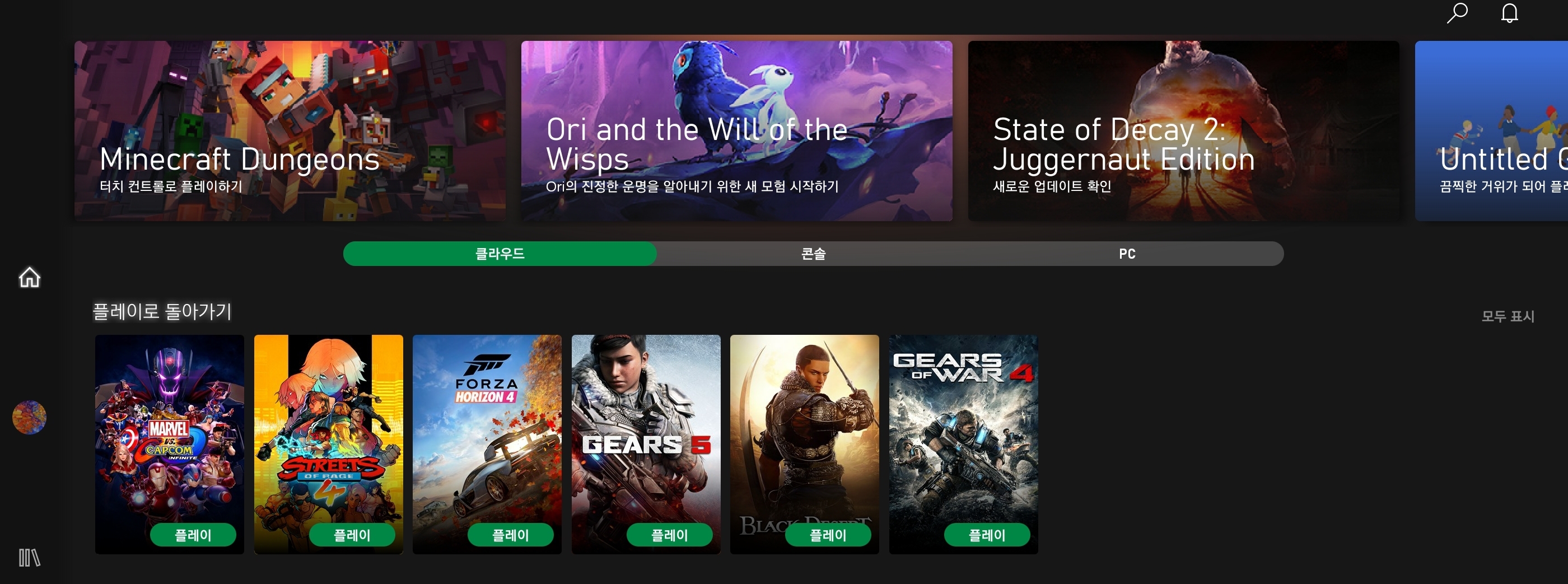 다음과 같이 클라우드 탭이 없어서 클라우드로는 게임을 할 수가 없다.