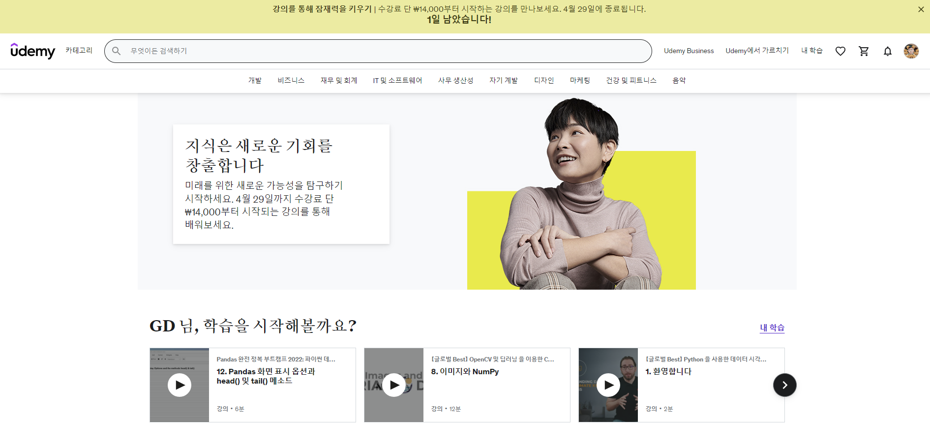 2020년 겨울에 한글화가 안 되어 있었던 Udemy를 만났고 엄청 반가웠었다.