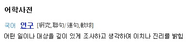 한마디로 '연구' 를 하고, '연구'하는 방법을 배운다. 그러면 연구란 무엇인가? 가장 기본인 단어의 정의로 돌아가자면, 다음과 같다.