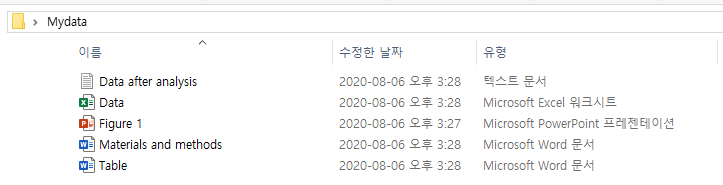 그리고 Figure와 Table파일도 보이네요. 이렇게만 정리 해 두어도 매우 훌륭합니다. 나중에 그냥 쓸 수 있을 정도이지요. 실험마다 이렇게 모아서 정리를 해 둔다면, 나중에 이용할 때 매우 편리할 겁니다. 추가하자면, 여기에 레퍼런스를 몇 개 가져다 놓거나, 관련 논문을 요약한 파일도 모아 놓는다면, 나중에 논문 쓸 때 무척 편리하겠지요.