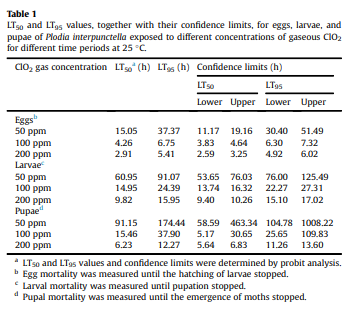 Han, Gyung Deok, et al. "Sensitivity of different life stages of Indian meal moth Plodia interpunctella to gaseous chlorine dioxide." Journal of Stored Products Research 69 (2016): 217-220.
